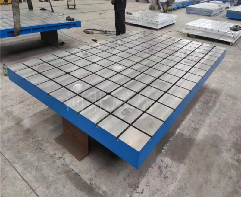变形“扛得住”:强结构抗冲击:底部“十字筋板+箱型主体”设计,筋板厚度12-15mm,间距200-250mm,形成密集支撑网。2000×3000mm底座承载15t试验台时,台面挠度≤0.02mm,即便面对5mm振幅的冲击振动,也不会出现变形,确保基准长期稳定。